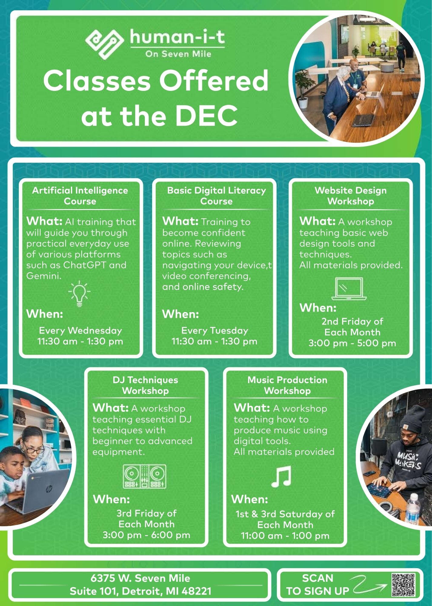Human-I-T on Seven Mile offers hands-on classes and creative workshops designed to build digital skills, spark creativity, and connect you to new opportunities.